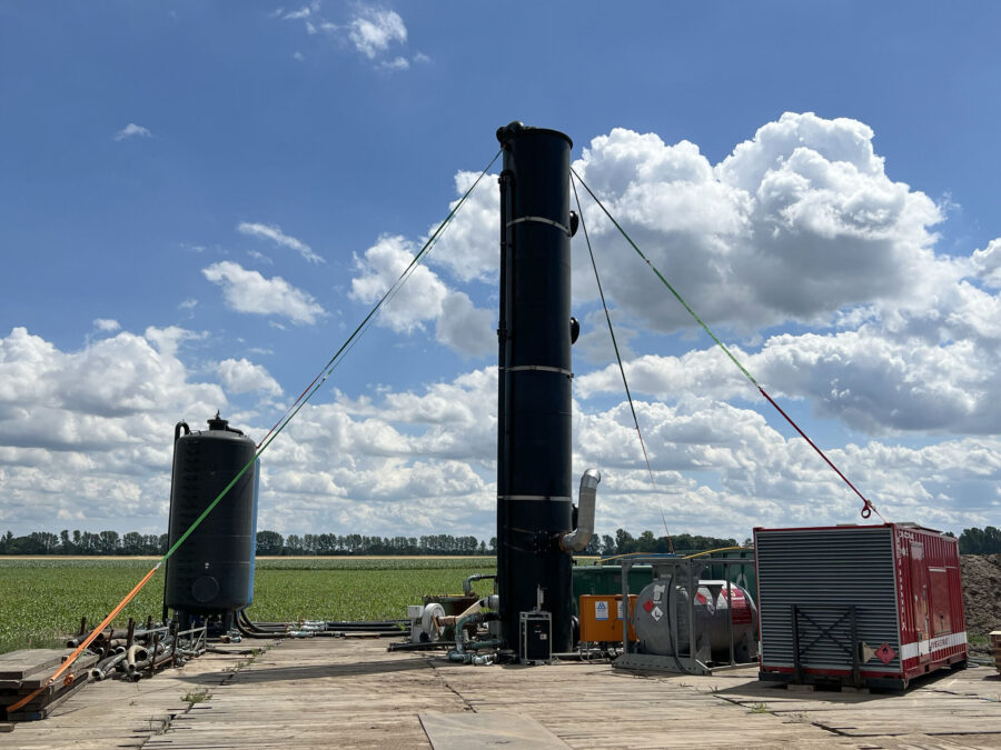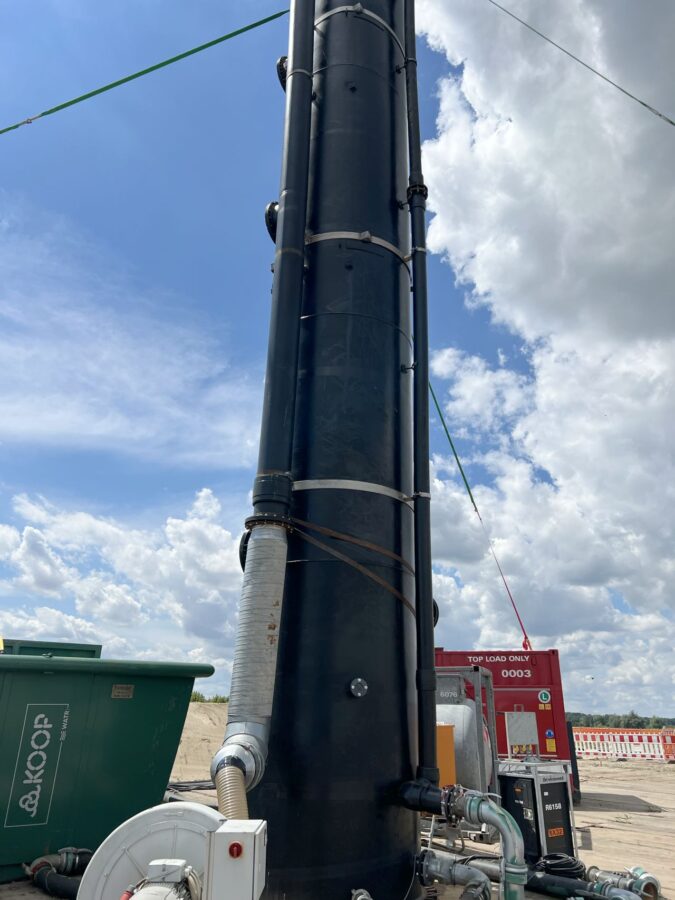 The contaminated groundwater is purified via sand filters for iron, a stripping tower for ammonium, activated carbon for TOC and an ion exchanger for phosphorus. We also use our own development: the oxygen treatment system.