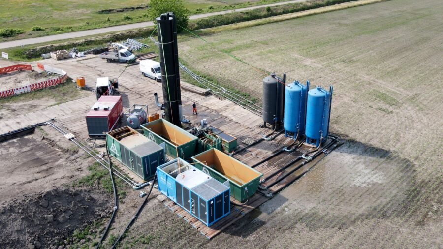 For the groundwater lowering we are using a closed system with up to 42 vacuum filters or 8 deep wells to lower the groundwater whereby an extraction flow rate of up to 350 m³/h is achieved. Electric plunger pumps and submersible pumps are used in this process.